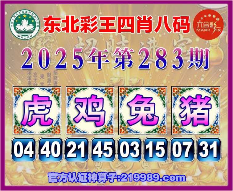 283期:『东北彩王』 🥰四肖八码🥰【虎兔猪】开:鸡45