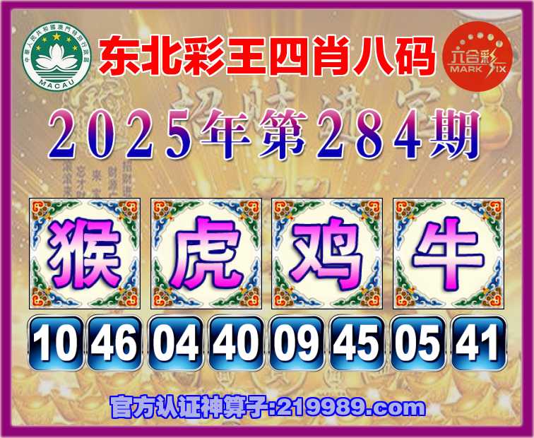 284期:『东北彩王』 🥰四肖八码🥰【猴虎鸡】开:牛41